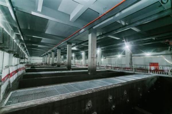 相比地上污水處理廠,全地下污水處理廠常年溫差較地面溫差小,水溫比較恒定,有利于各種污水生物處理工藝的穩(wěn)定運(yùn)行,建成后,出水水質(zhì)可達(dá)國家地表環(huán)境質(zhì)量IV類標(biāo)準(zhǔn),經(jīng)過處理的水可實(shí)現(xiàn)就近處理、就地回用,一部分直接用于地上公園的園林綠化,另一部分由巴氏計(jì)量槽引入箱體內(nèi)的沖洗水池、回水池和消防水池,可用于沖洗細(xì)格柵和膜格柵,既減少了管網(wǎng)投入和運(yùn)行成本,也美化了廠區(qū)環(huán)境,實(shí)現(xiàn)綠色可循環(huán)發(fā)展。
