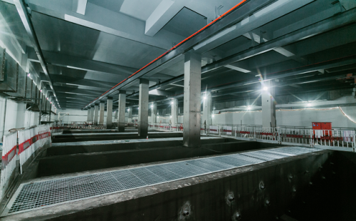 西安市第三污水處理廠并不只是簡(jiǎn)單將地上的污水處理廠“下沉”,而是在充分考慮各類安全風(fēng)險(xiǎn)等因素后,重新統(tǒng)籌功能分區(qū),實(shí)現(xiàn)資源整合的最優(yōu)配置。項(xiàng)目采用分層布置形式,地下一層為操作層,為設(shè)備調(diào)控中心和人力檢修中心,地下二層為水處理構(gòu)筑物和綜合管廊,污水處理廠的曝氣池、沉淀池等在這里“一應(yīng)俱全”。同時(shí),項(xiàng)目團(tuán)隊(duì)結(jié)合施工方案對(duì)地下空間進(jìn)行多維度優(yōu)化,形成立體三維布置,通過優(yōu)化工藝流程、重組單元組團(tuán)、修改構(gòu)筑物布局等方式,提升空間利用效率,將項(xiàng)目占地用地減少了三分之二。