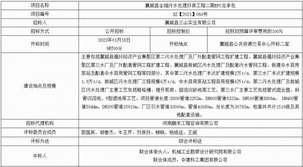 襄城縣全域污水處理環(huán)保工程二期EPC總承包(不見面開標)-結(jié)果公告-****標段